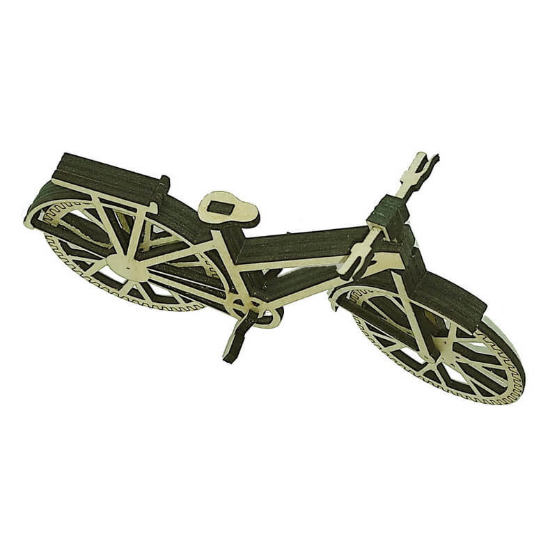 Realizată din 3 straturi de lemn. Are componente mobile: Roți, Pedale, Ghidon, Cric. Se sprijină pe cric pentru poziție pe verticală.